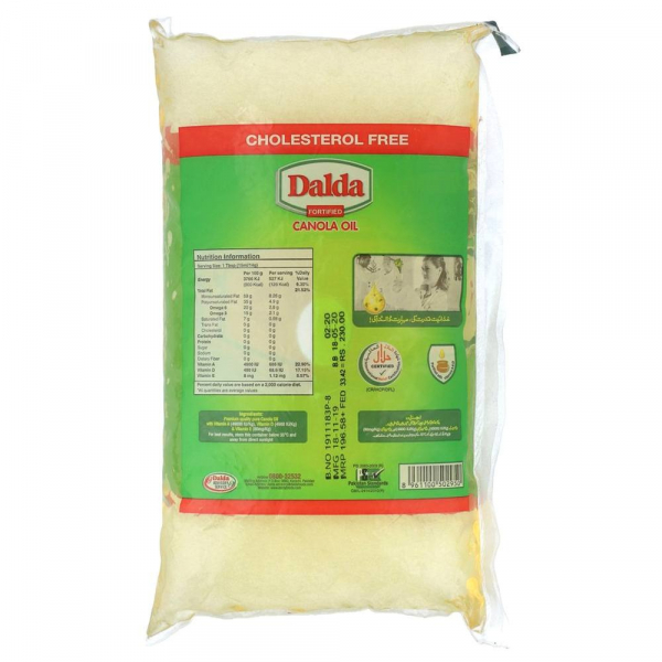 Dalda Cooking Oil Pouch offers pure, light, and healthy cooking oil made from high-quality ingredients. Known for its neutral taste and superior frying performance, it preserves the natural flavor of food while keeping it light and crisp. Enriched with essential vitamins A and D, Dalda Cooking Oil supports a balanced and nutritious diet for the whole family. Perfect for everyday cooking, frying, and baking needs.