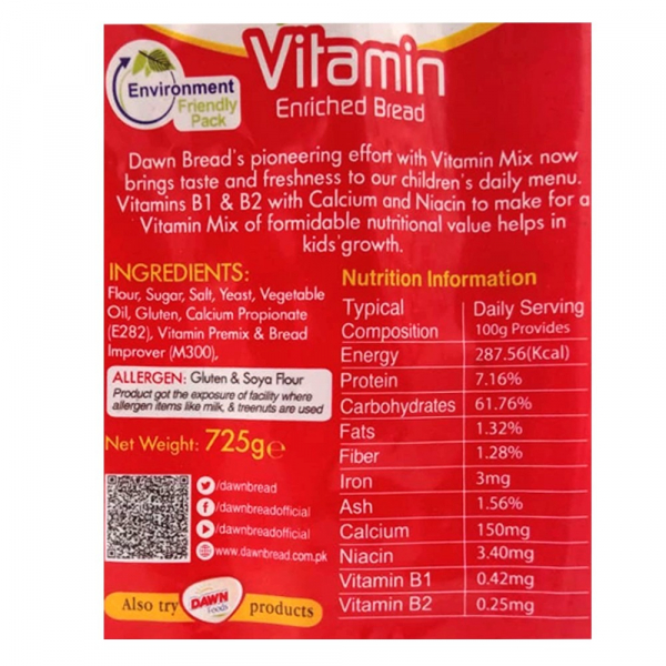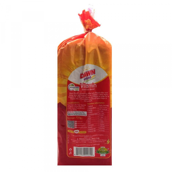 Dawn Bread Plain Small 340g in Pakistan is a soft, fresh, and fluffy loaf baked to perfection for everyday use. With its light texture and balanced taste, it’s an ideal choice for sandwiches, toast, or pairing with your favorite spreads.