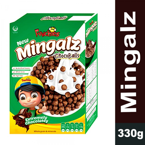 Funchies Mingalz Choco Balls 330g in Pakistan are crispy, crunchy cereal balls coated with rich, smooth chocolate for an irresistible taste. Perfectly bite-sized, they’re a fun and delicious snack for kids and adults alike.