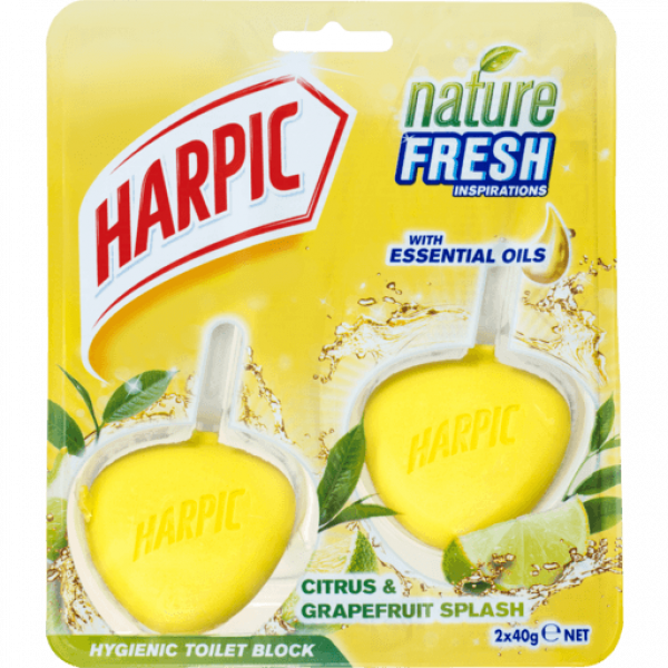 Harpic In-Toilet Block – Citrus & Grapefruit 2x40gm keeps your toilet fresh and clean with every flush. Its powerful formula prevents stains, removes limescale, and fights germs while releasing a pleasant citrus and grapefruit fragrance. Easy to use and long-lasting, it ensures continuous freshness and hygiene between deep cleans. Harpic — Pakistan’s trusted choice for all-round toilet care and lasting fragrance.